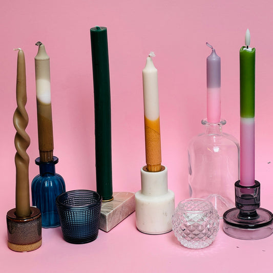 Kaarsenhouder - Dobbelstenen - Blauw/ Roze