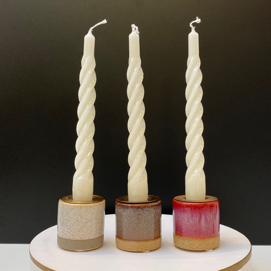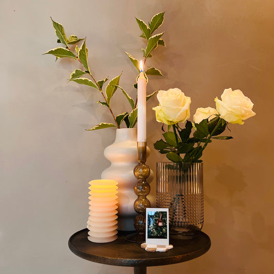 Glazen Kaarsenhouder Swirl - Zand Bruin