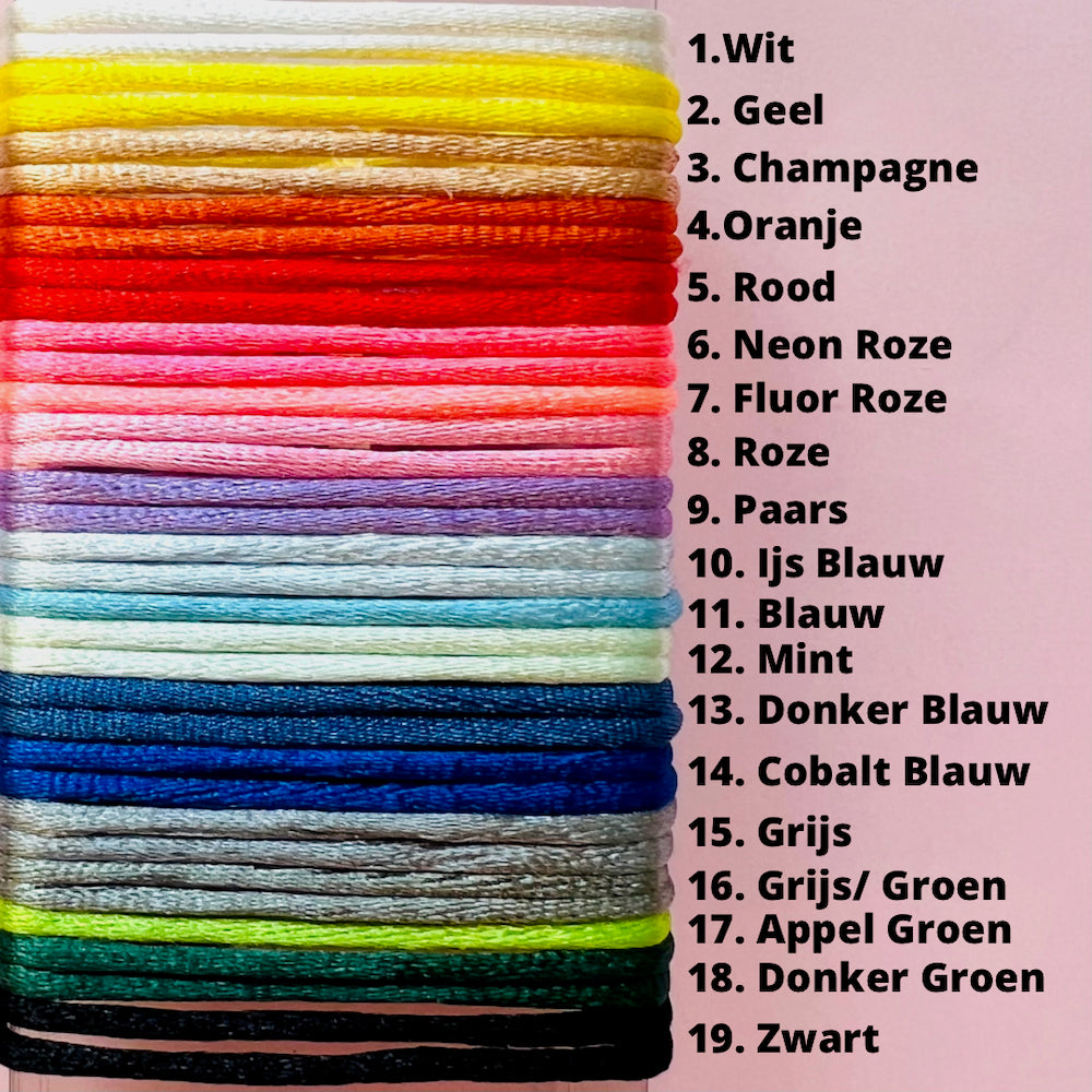 Materiaal Koord: Het bandje is gemaakt van Satijn. Maak het persoonlijk door jouw favoriete kleur satijn koord te kiezen!