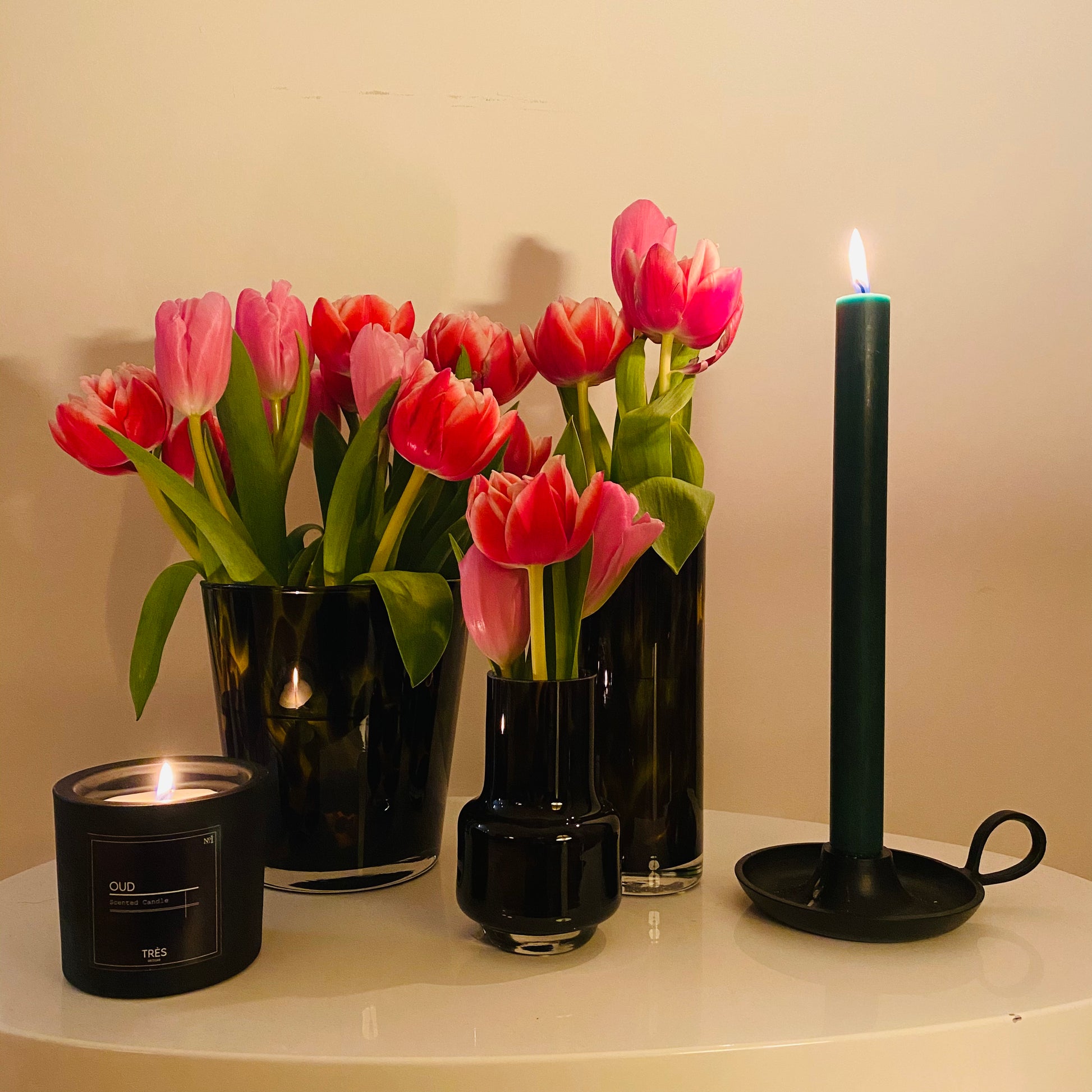 Zet ze in jouw favoriete kaarsenhouder or bijvoorbeeld in een lege fles.