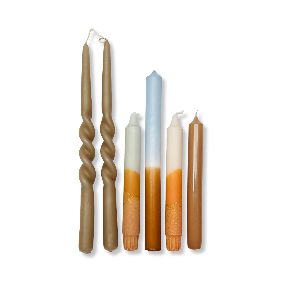 De kaarsen trend van het moment zijn de spiraal/ swirl kaarsen, gekleurde diner kaarsen en color dipped kaarsen. Met deze diner kaarsen geef je een speciale touch aan jouw huis. Zet ze in jouw favoriete kaarsenhouder or bijvoorbeeld in een lege fles.
