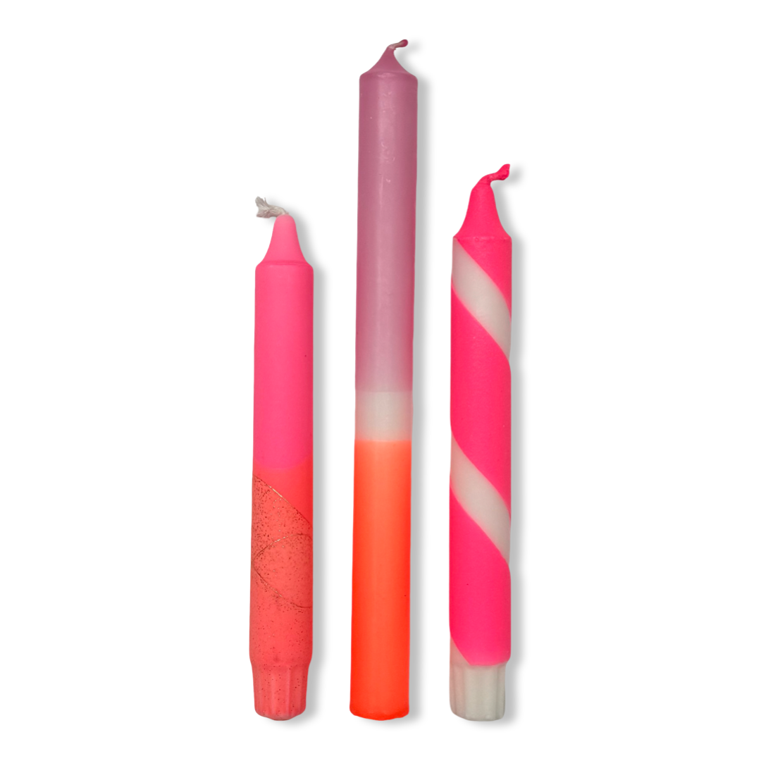 De kaarsen trend van het moment zijn de spiraal/ swirl kaarsen, gekleurde diner kaarsen en color dipped kaarsen. Met deze diner kaarsen geef je een speciale touch aan jouw huis. Zet ze in jouw favoriete kaarsenhouder or bijvoorbeeld in een lege fles.