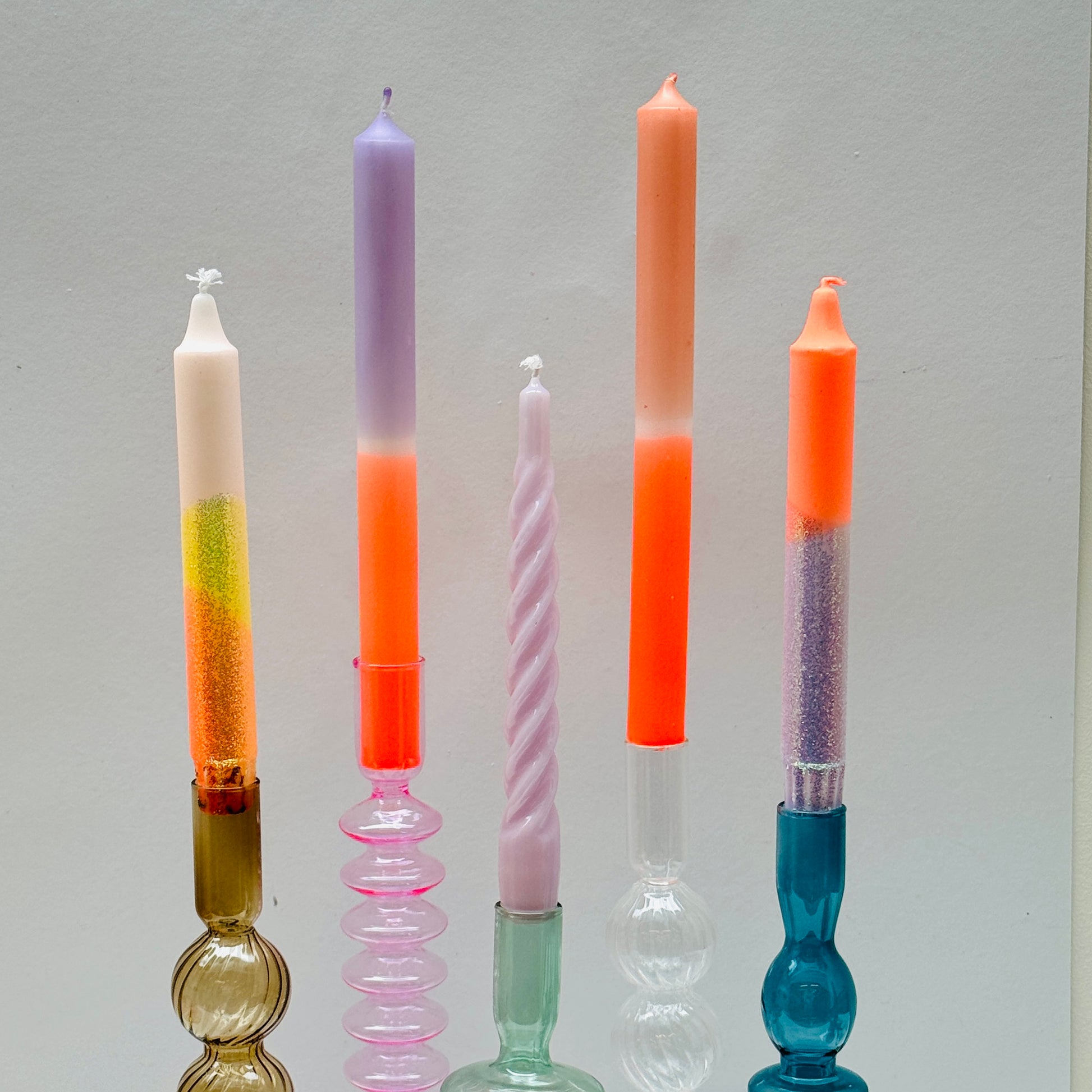 De kaarsen trend van het moment zijn de spiraal/ swirl kaarsen, gekleurde diner kaarsen en color dipped kaarsen. Met deze diner kaarsen geef je een speciale touch aan jouw huis. Zet ze in jouw favoriete kaarsenhouder or bijvoorbeeld in een lege fles.