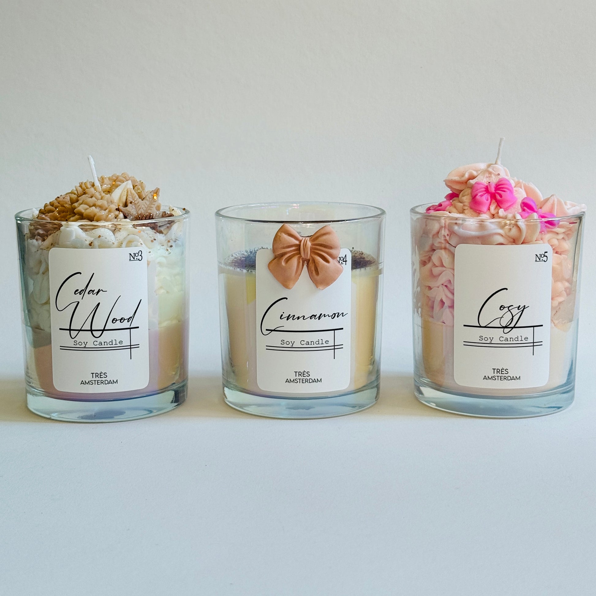 De kaars is gemaakt van soja wax en met de hand gegoten in een prachtig holografisch/ parelmoeren glas. Zodra je de kaars aansteekt komen er duizenden glittertjes tevoorschijn die sprankelen tot dat de kaars helemaal op is.