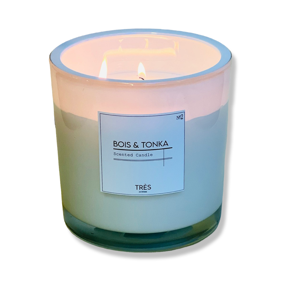 Deze kaars heeft de heerlijke geur genaamd: ‘Bois & Tonka’.