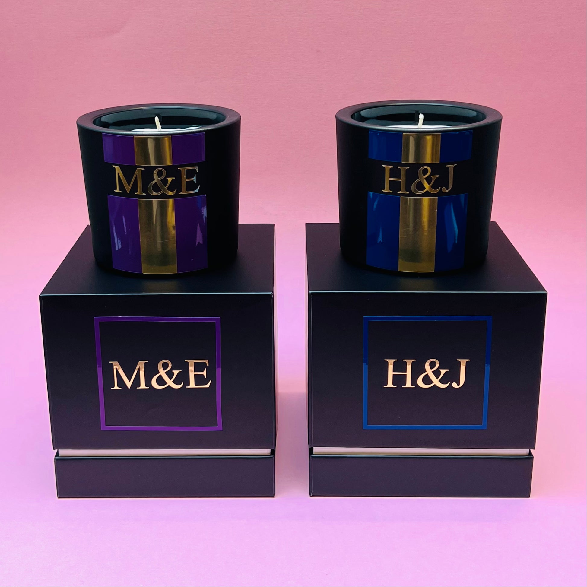 De kaars komt in een luxe doos die ook gepersonaliseerd wordt.