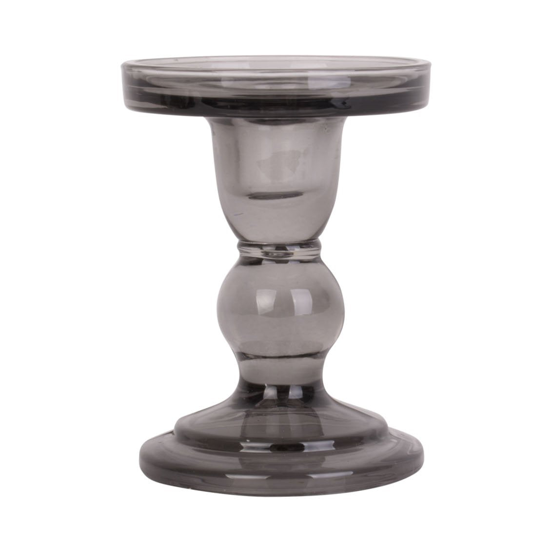 Glazen Kaarsenhouder - Grijs/ Zwart (M)