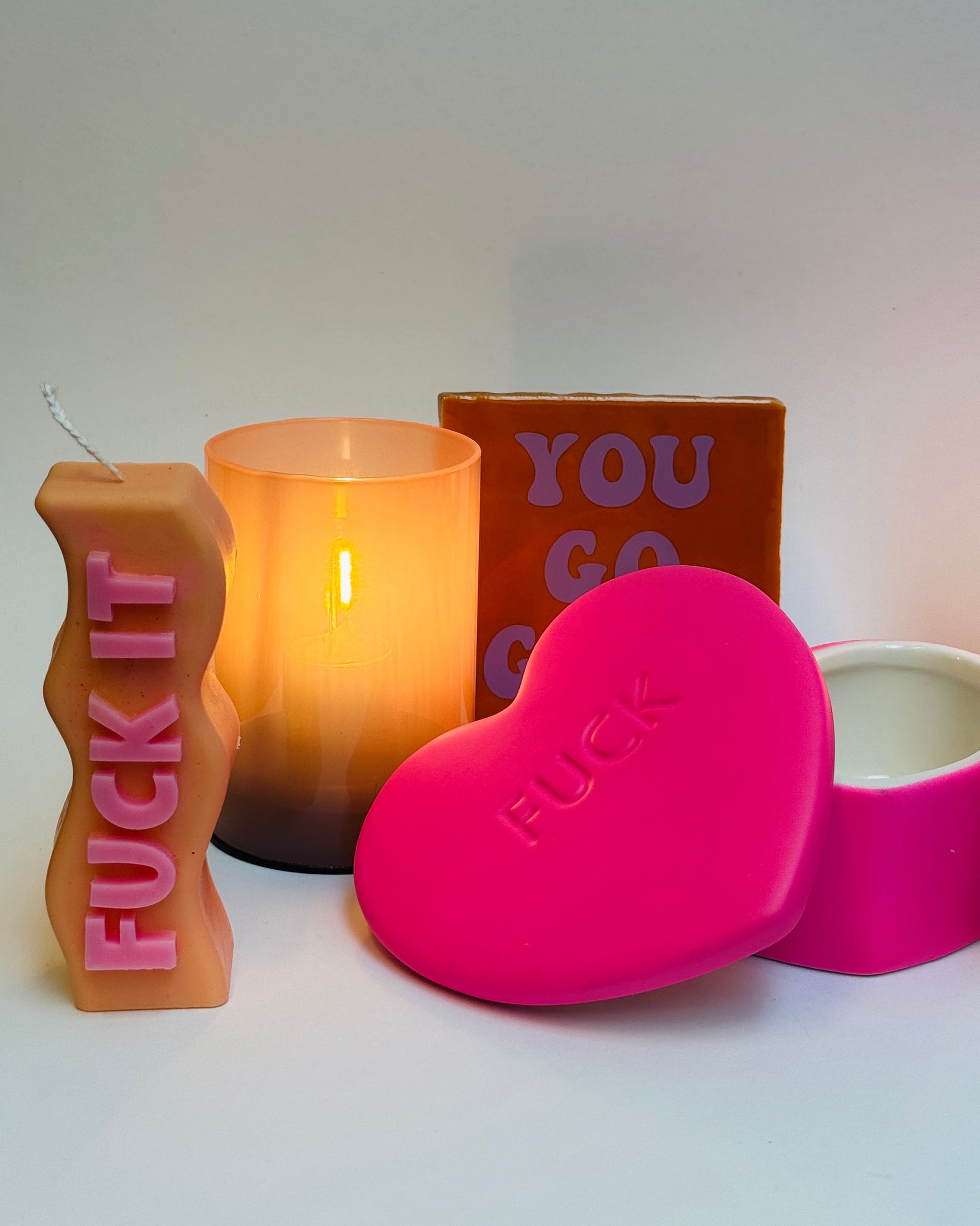 Keramische Sierpot- Snoep Hart - Fuck - Fluor Roze