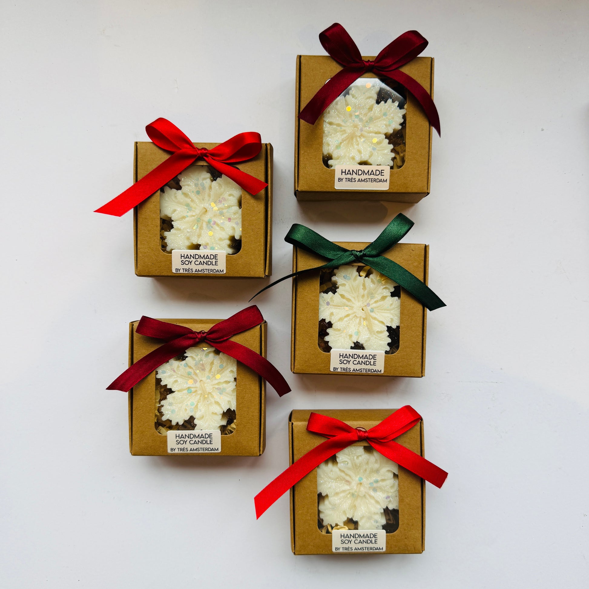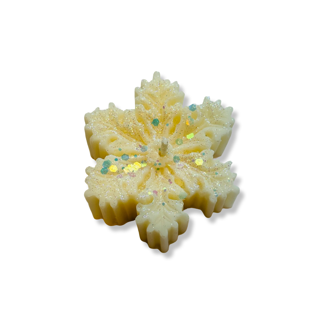 Dit schattige sneeuwvlok kaarsje is hand gemaakt van soja wax.