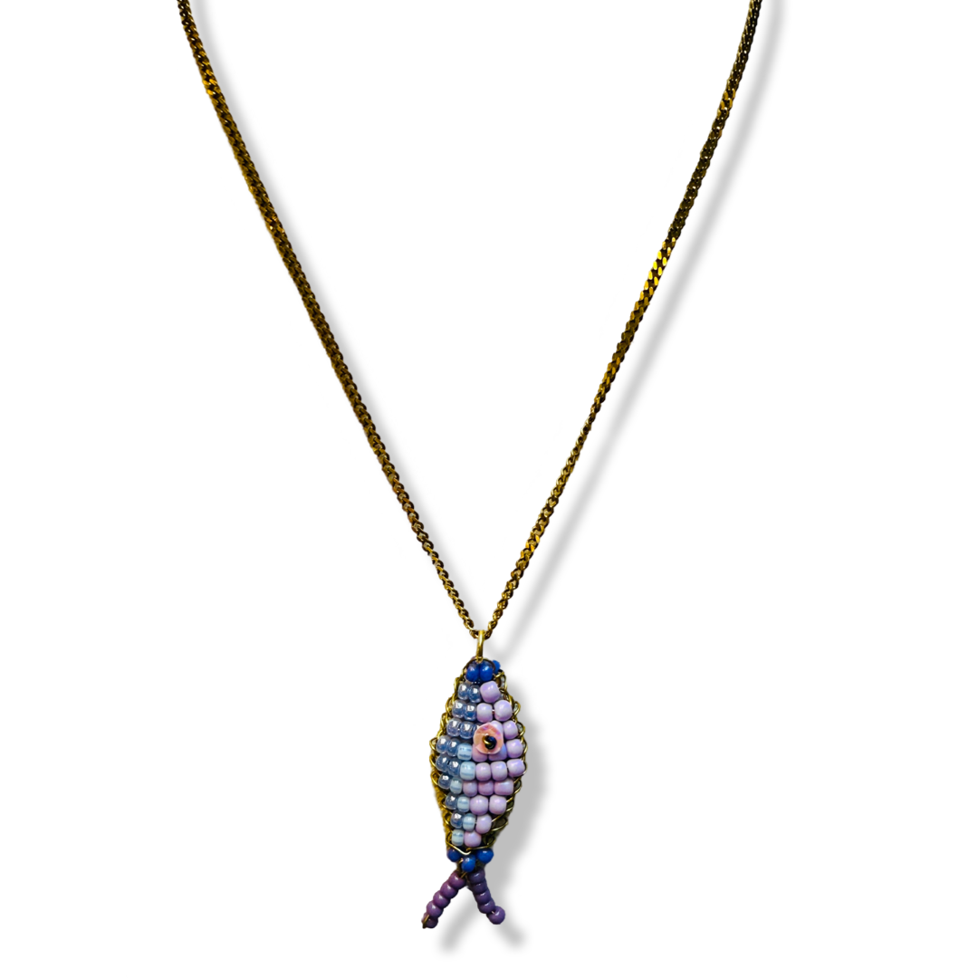De visjes zijn handgemaakt van miyuki kraaltjes.