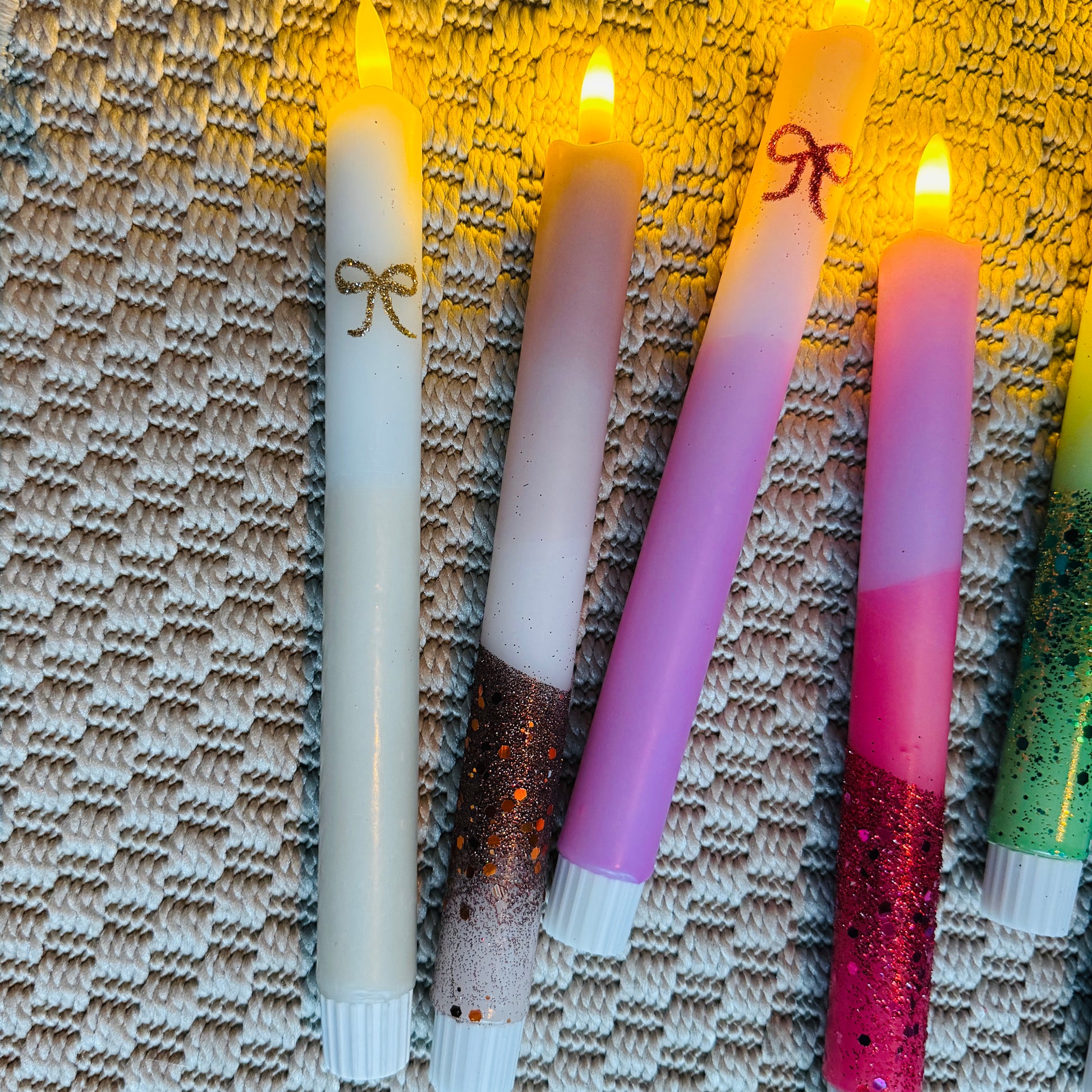 De kaarsen worden met de hand gedipt of voorzien van een design. Hierdoor zal elke kaars uniek zijn. Ook de kleuren van de kleuren kaart kunnen iets afwijken in het echt.
