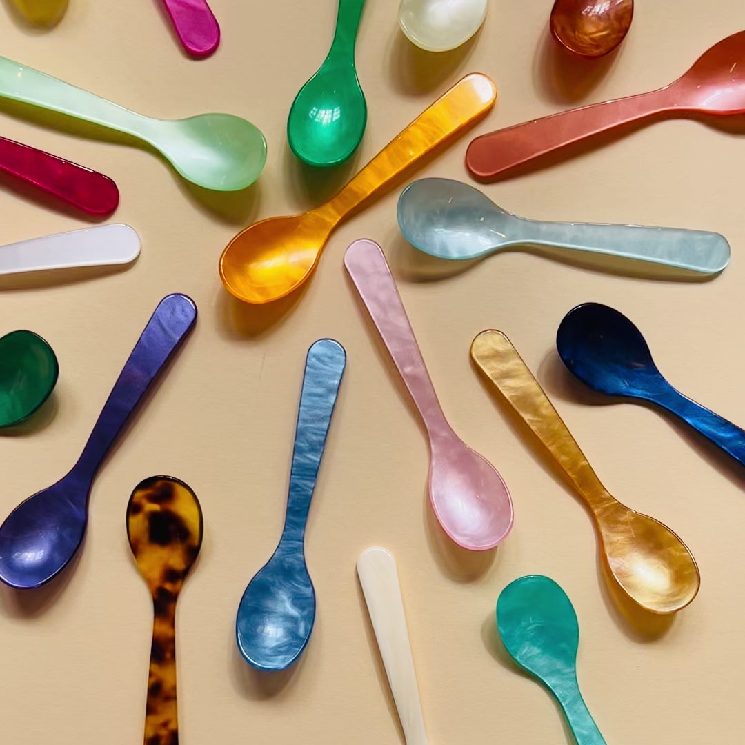 De lepels zijn handgemaakt in Duitsland, waar ze dit ambachtelijk doen sinds 1862. Ze zijn gemaakt van 100% plexiglas en zijn 12,5cm lang.