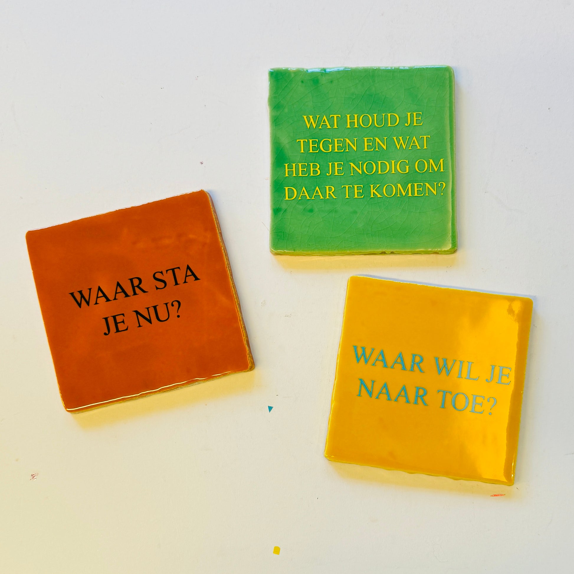 De teksten maken wij zelf op de tegeltjes. Kies zelf jouw favoriete kleur tegel en de tekst + kleur. Dan maken wij het tegeltje speciaal voor jou.