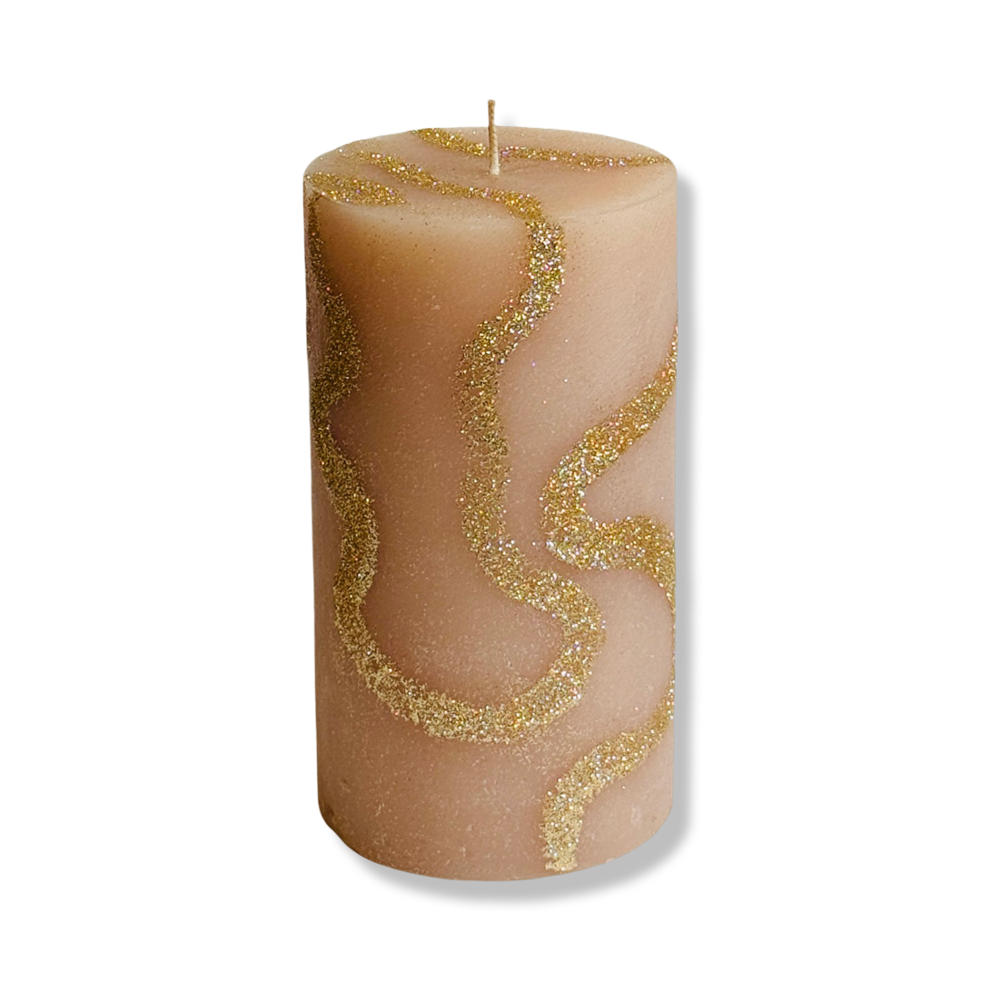 Rustieke Stomp Kaars Barok - Beige/ Roze + Goud Glitter (L)