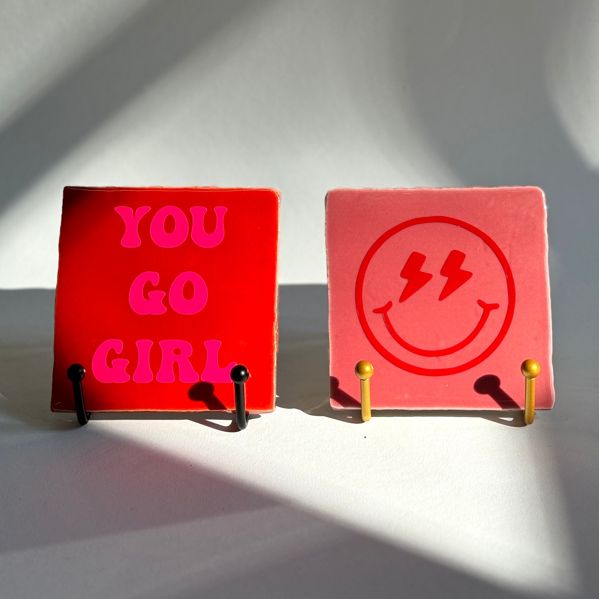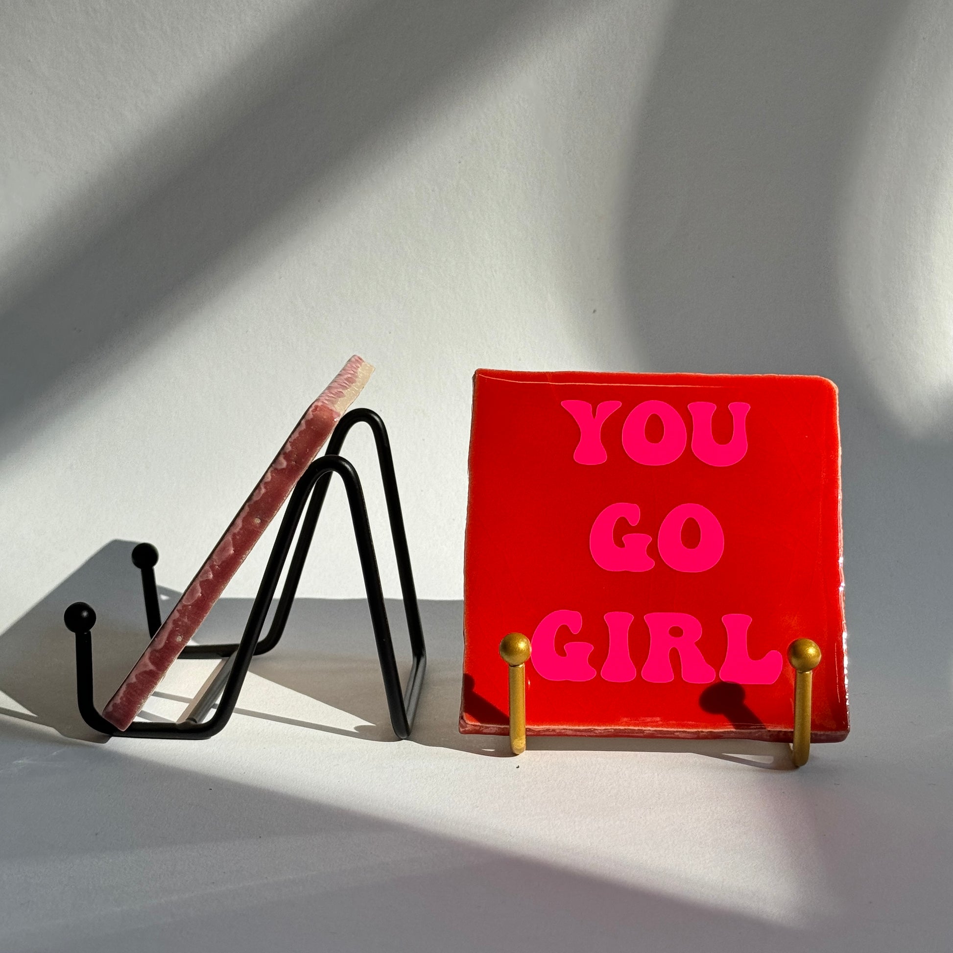 Naast dat je je tegeltjes kan ophangen of tegen de muur kan zetten is het ook leuk om je tegeltje wellicht ergens anders in huis te zetten. Daar dient deze houder perfect voor.